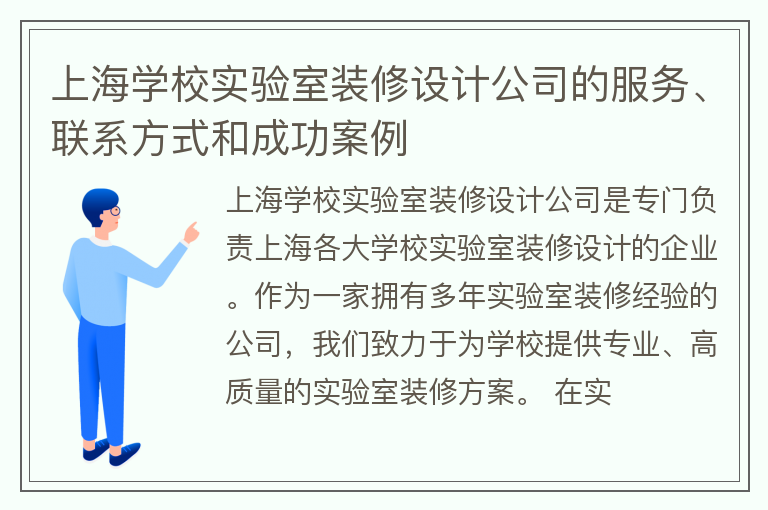 上海学校实验室装修设计公司的服务、联系方式和成功案例