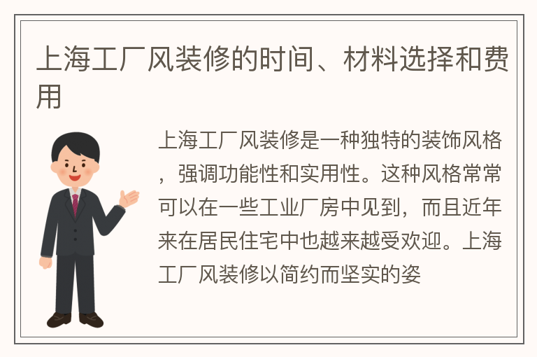 上海工厂风装修是一种独特的装饰风格,强调功能性和实用性。这种风格常常可以在一些工业厂房中见到,而且近年来在居民住宅中也越来越受欢迎。上海工厂风装修以简约而坚实的姿......【点击详情】