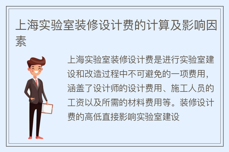 上海实验室装修设计费是进行实验室建设和改造过程中不可避免的一项费用,涵盖了设计师的设计费用、施工人员的工资以及所需的材料费用等。装修设计费的高低直接影响实验室建设......【点击详情】