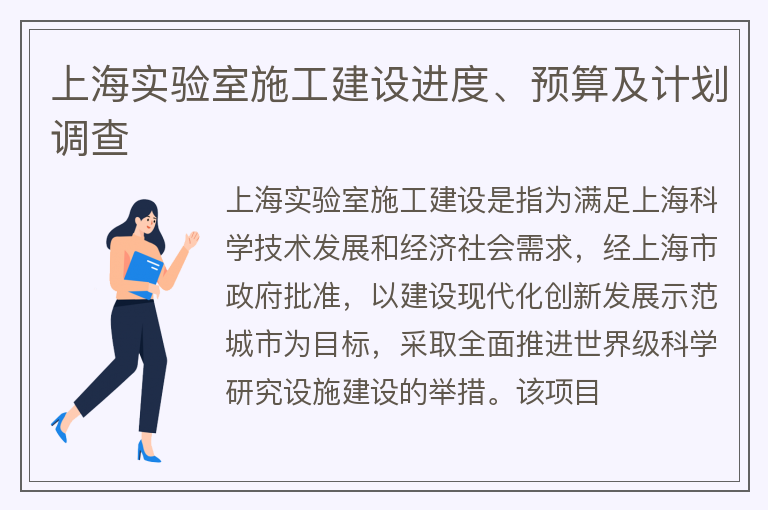 上海实验室施工建设是指为满足上海科学技术发展和经济社会需求,经上海市政府批准,以建设现代化创新发展示范城市为目标,采取全面推进世界级科学研究设施建设的举措。该项目......【点击详情】