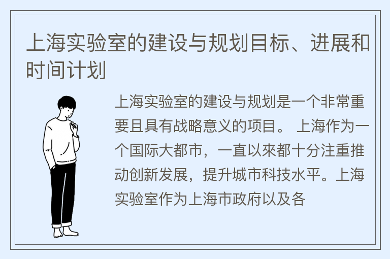 上海实验室的建设与规划是一个非常重要且具有战略意义的项目。 上海作为一个国际大都市,一直以來都十分注重推动创新发展,提升城市科技水平。上海实验室作为上海市政府以及各......【点击详情】