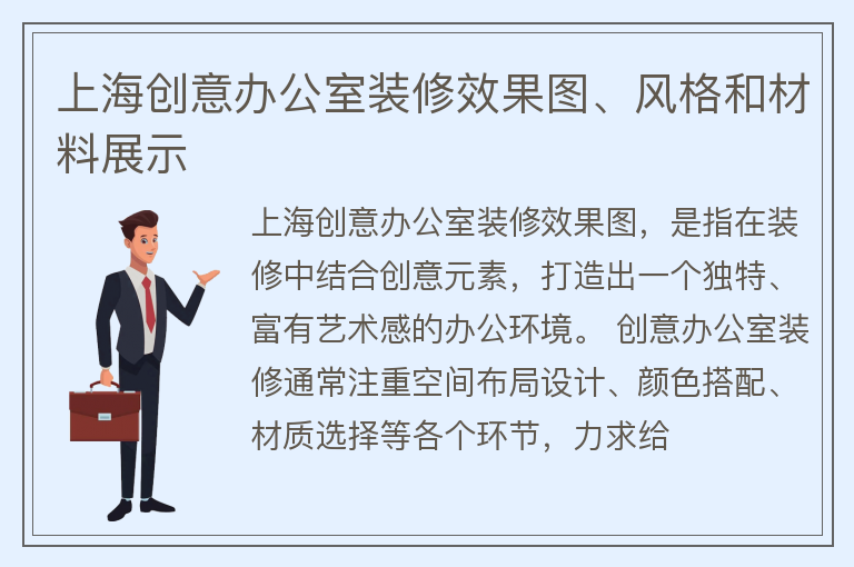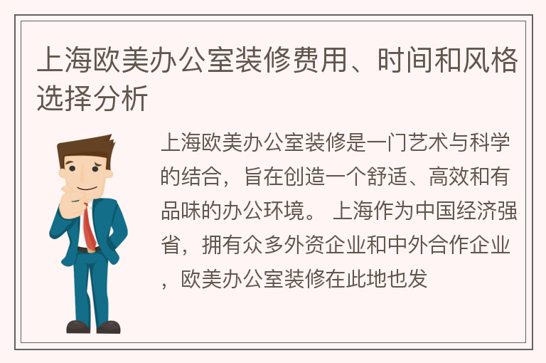 上海欧美办公室装修是一门艺术与科学的结合,旨在创造一个舒适、高效和有品味的办公环境。 上海作为中国经济强省,拥有众多外资企业和中外合作企业,欧美办公室装修在此地也发......【点击详情】