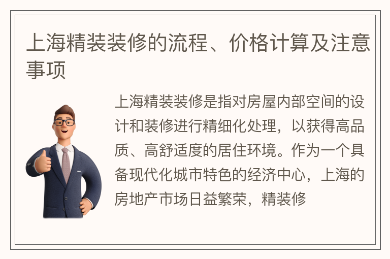 上海精装装修是指对房屋内部空间的设计和装修进行精细化处理,以获得高品质、高舒适度的居住环境。作为一个具备现代化城市特色的经济中心,上海的房地产市场日益繁荣,精装修......【点击详情】