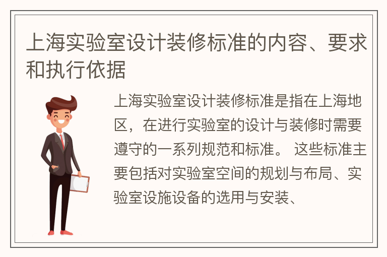 上海实验室设计装修标准是指在上海地区,在进行实验室的设计与装修时需要遵守的一系列规范和标准。 这些标准主要包括对实验室空间的规划与布局、实验室设施设备的选用与安装、......【点击详情】