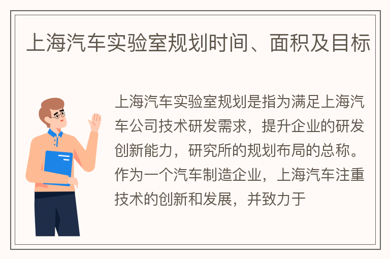 上海汽车实验室规划是指为满足上海汽车公司技术研发需求,提升企业的研发创新能力,研究所的规划布局的总称。作为一个汽车制造企业,上海汽车注重技术的创新和发展,并致力于......【点击详情】