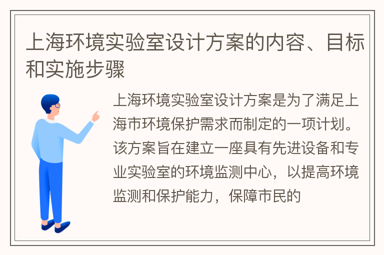 上海环境实验室设计方案是为了满足上海市环境保护需求而制定的一项计划。该方案旨在建立一座具有先进设备和专业实验室的环境监测中心,以提高环境监测和保护能力,保障市民的......【点击详情】