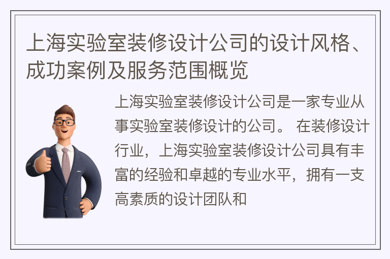 上海实验室装修设计公司的设计风格、成功案例及服务范围概览