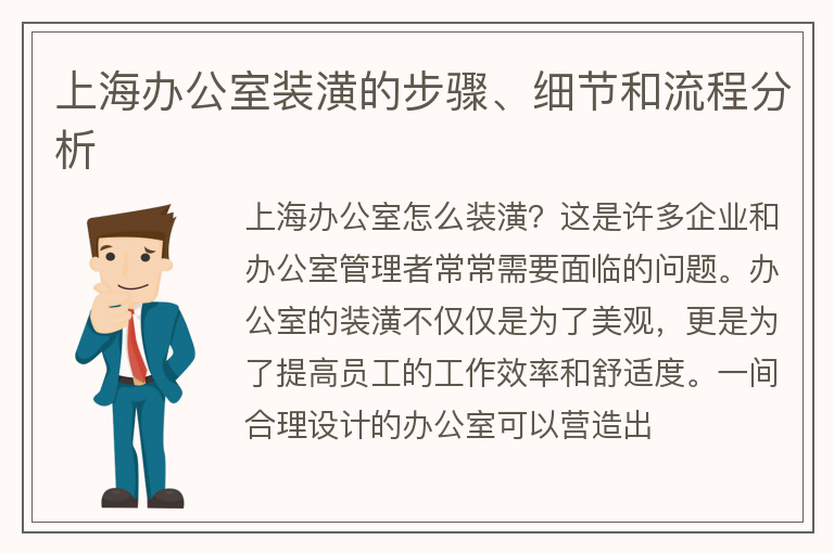 上海办公室怎么装潢?这是许多企业和办公室管理者常常需要面临的问题。办公室的装潢不仅仅是为了美观,更是为了提高员工的工作效率和舒适度。一间合理设计的办公室可以营造出......【点击详情】