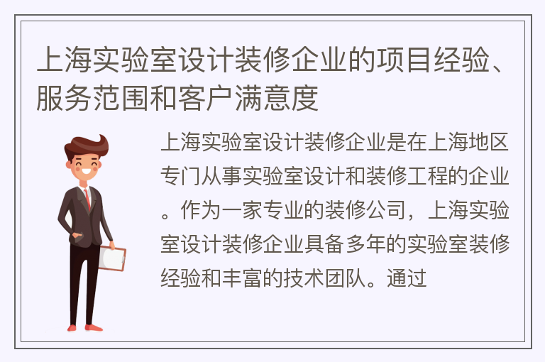 上海实验室设计装修企业的项目经验、服务范围和客户满意度