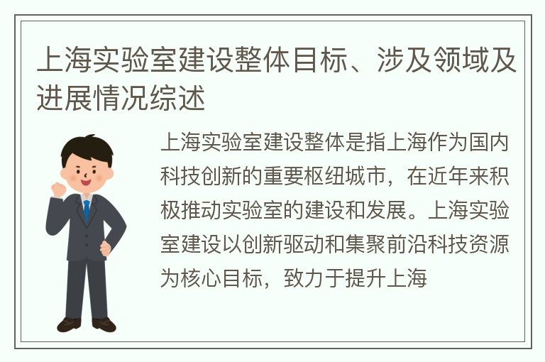 上海实验室建设整体目标、涉及领域及进展情况综述
