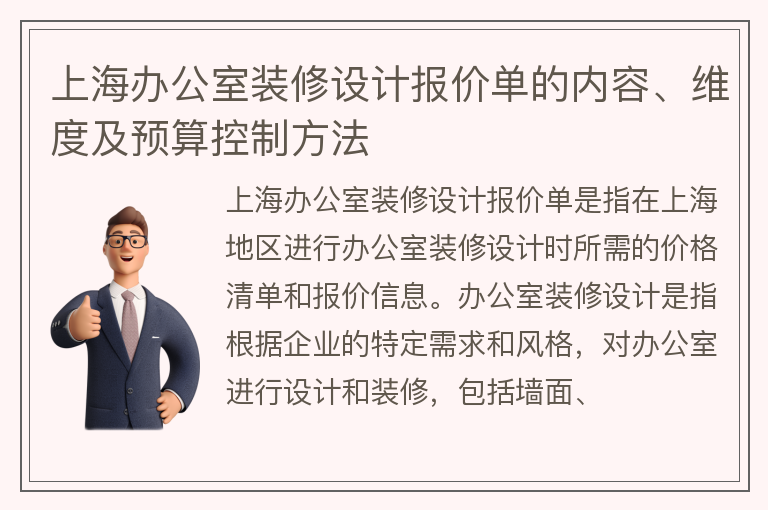 上海办公室装修设计报价单的内容、维度及预算控制方法