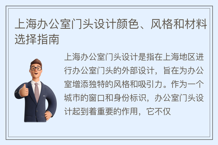 上海办公室门头设计是指在上海地区进行办公室门头的外部设计,旨在为办公室增添独特的风格和吸引力。作为一个城市的窗口和身份标识,办公室门头设计起到着重要的作用,它不仅......【点击详情】