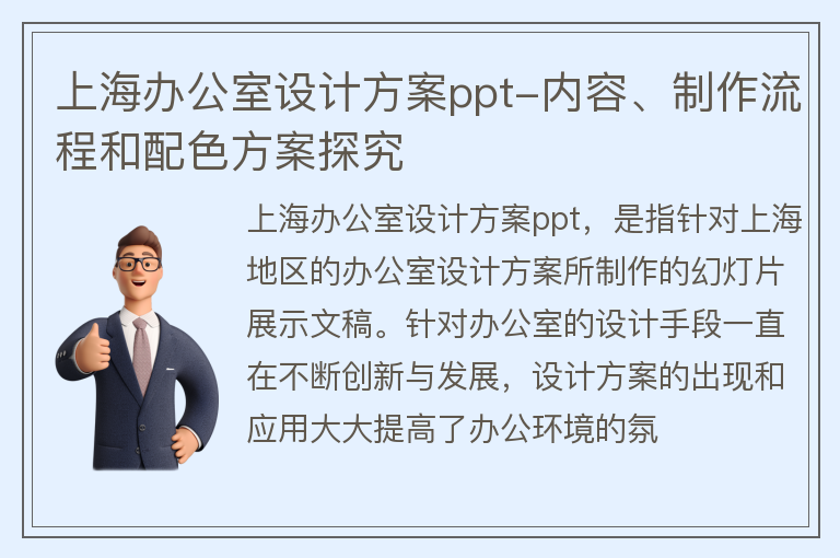 上海办公室设计方案ppt-内容、制作流程和配色方案探究