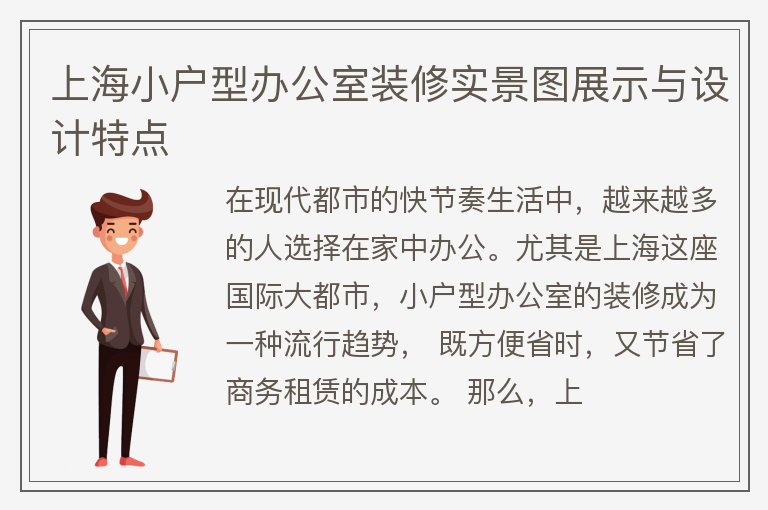 在现代都市的快节奏生活中,越来越多的人选择在家中办公。尤其是上海这座国际大都市,小户型办公室的装修成为一种流行趋势, 既方便省时,又节省了商务租赁的成本。 那么,上......【点击详情】