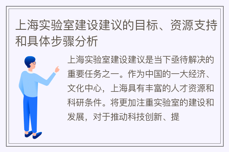 上海实验室建设建议的目标、资源支持和具体步骤分析