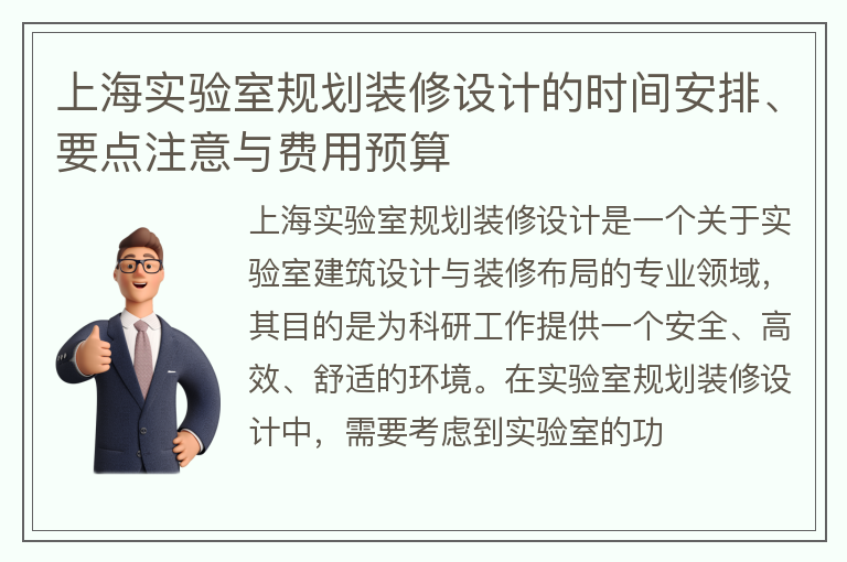 上海实验室规划装修设计的时间安排、要点注意与费用预算