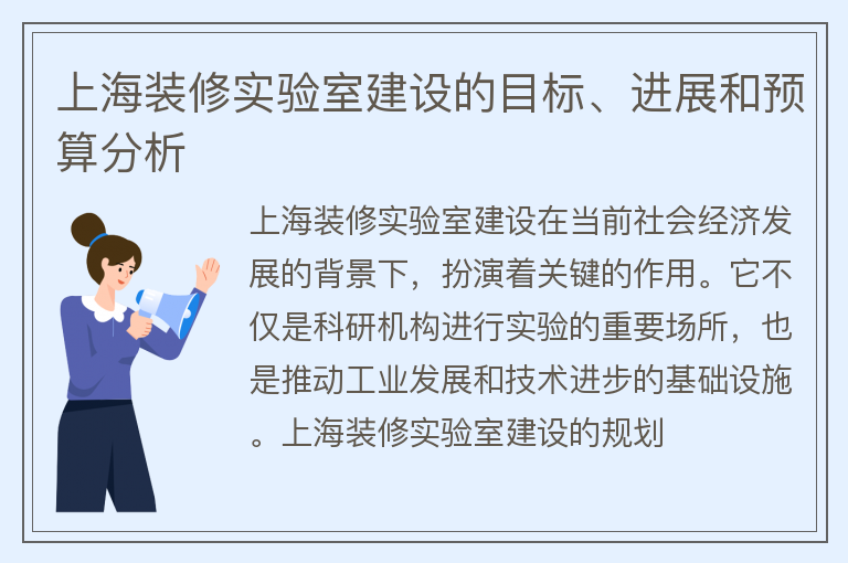 上海装修实验室建设在当前社会经济发展的背景下,扮演着关键的作用。它不仅是科研机构进行实验的重要场所,也是推动工业发展和技术进步的基础设施。上海装修实验室建设的规划......【点击详情】