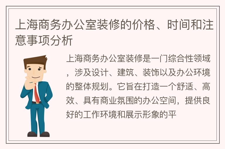 上海商务办公室装修是一门综合性领域,涉及设计、建筑、装饰以及办公环境的整体规划。它旨在打造一个舒适、高效、具有商业氛围的办公空间,提供良好的工作环境和展示形象的平......【点击详情】