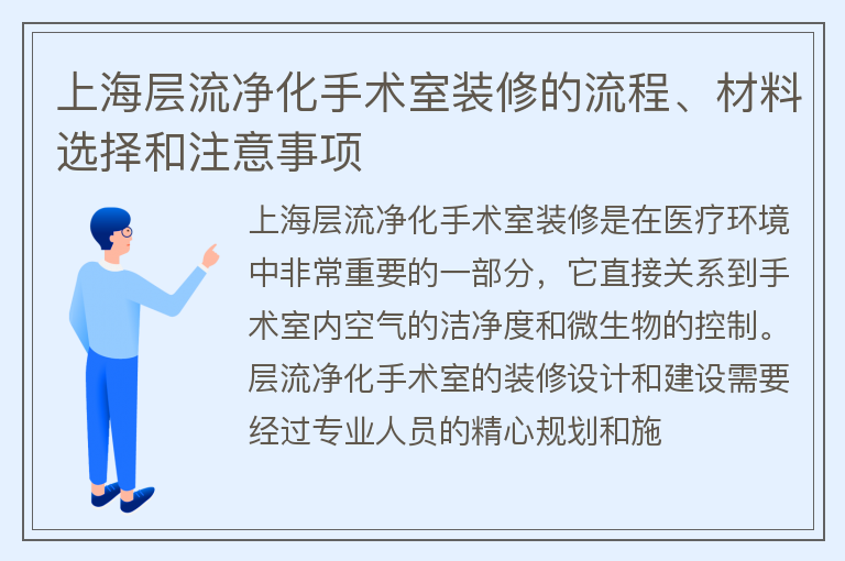 上海层流净化手术室装修的流程、材料选择和注意事项