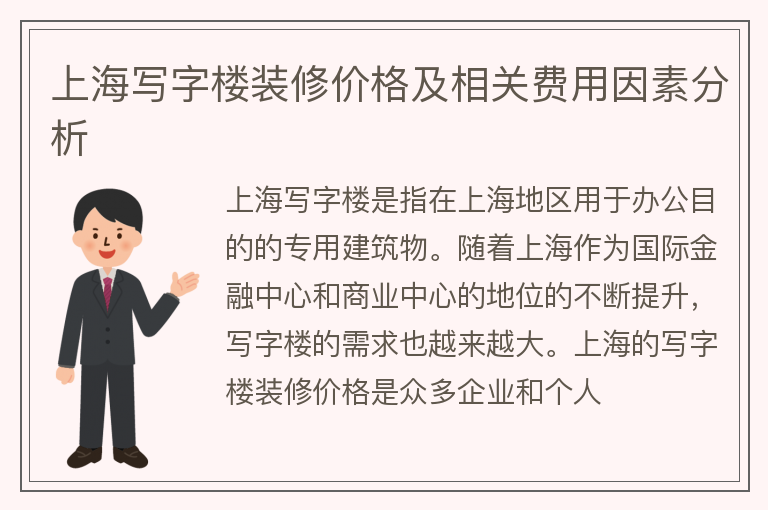 上海写字楼装修价格及相关费用因素分析