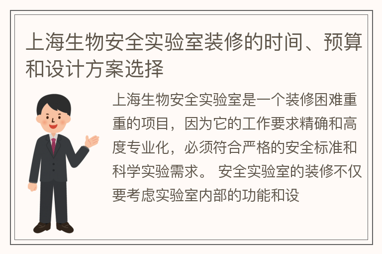 上海生物安全实验室装修的时间、预算和设计方案选择
