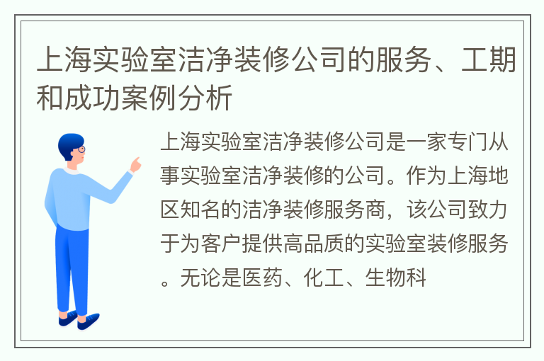 上海实验室洁净装修公司的服务、工期和成功案例分析