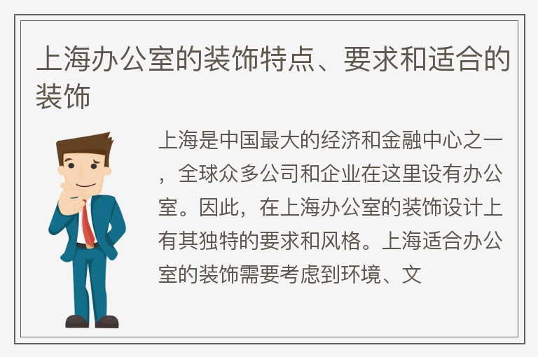 上海是中国最大的经济和金融中心之一,全球众多公司和企业在这里设有办公室。因此,在上海办公室的装饰设计上有其独特的要求和风格。上海适合办公室的装饰需要考虑到环境、文......【点击详情】