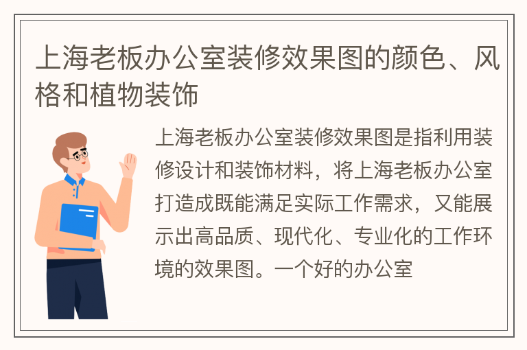 上海老板办公室装修效果图的颜色、风格和植物装饰