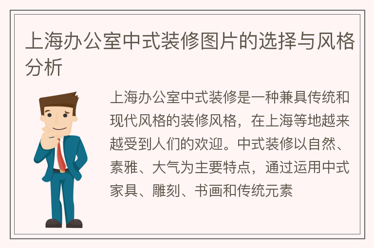 上海办公室中式装修是一种兼具传统和现代风格的装修风格,在上海等地越来越受到人们的欢迎。中式装修以自然、素雅、大气为主要特点,通过运用中式家具、雕刻、书画和传统元素......【点击详情】