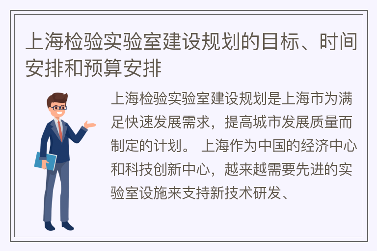 上海检验实验室建设规划的目标、时间安排和预算安排