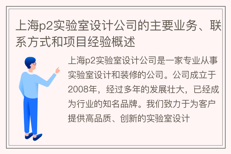 上海p2实验室设计公司的主要业务、联系方式和项目经验概述