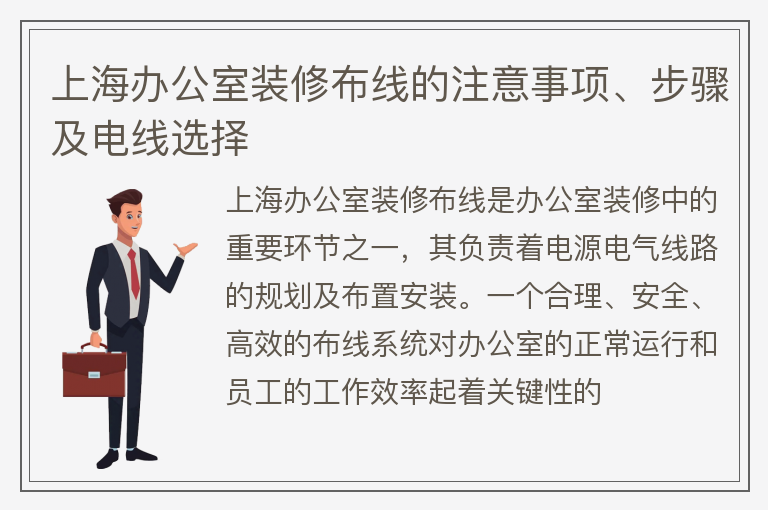 上海办公室装修布线的注意事项、步骤及电线选择