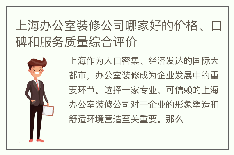 上海办公室装修公司哪家好的价格、口碑和服务质量综合评价