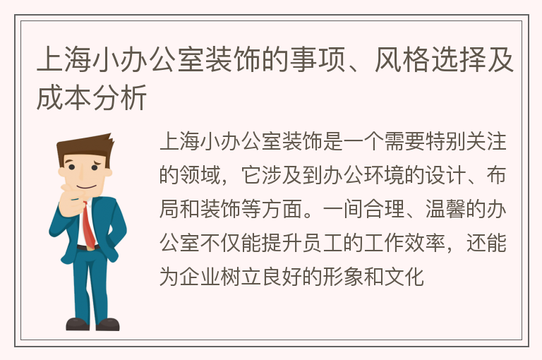 上海小办公室装饰的事项、风格选择及成本分析