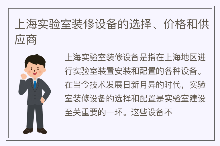 上海实验室装修设备是指在上海地区进行实验室装置安装和配置的各种设备。在当今技术发展日新月异的时代,实验室装修设备的选择和配置是实验室建设至关重要的一环。这些设备不......【点击详情】