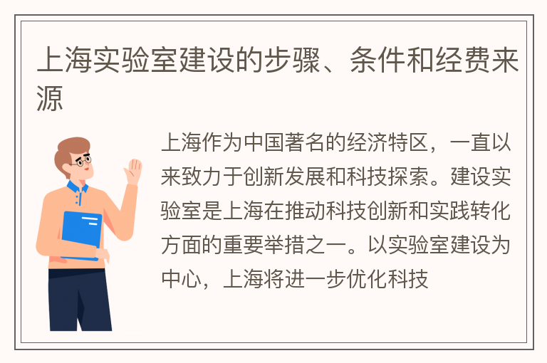 上海作为中国著名的经济特区,一直以来致力于创新发展和科技探索。建设实验室是上海在推动科技创新和实践转化方面的重要举措之一。以实验室建设为中心,上海将进一步优化科技......【点击详情】