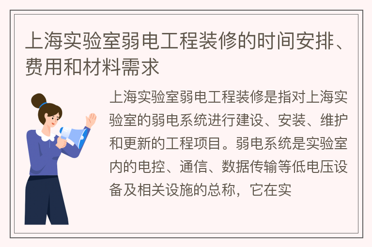 上海实验室弱电工程装修的时间安排、费用和材料需求