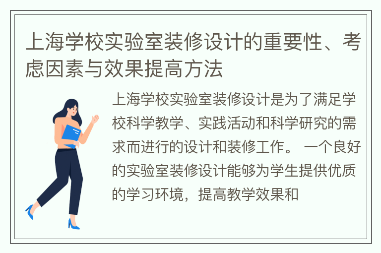 上海学校实验室装修设计的重要性、考虑因素与效果提高方法