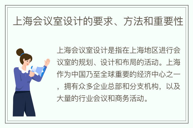 上海会议室设计是指在上海地区进行会议室的规划、设计和布局的活动。上海作为中国乃至全球重要的经济中心之一,拥有众多企业总部和分支机构,以及大量的行业会议和商务活动。......【点击详情】