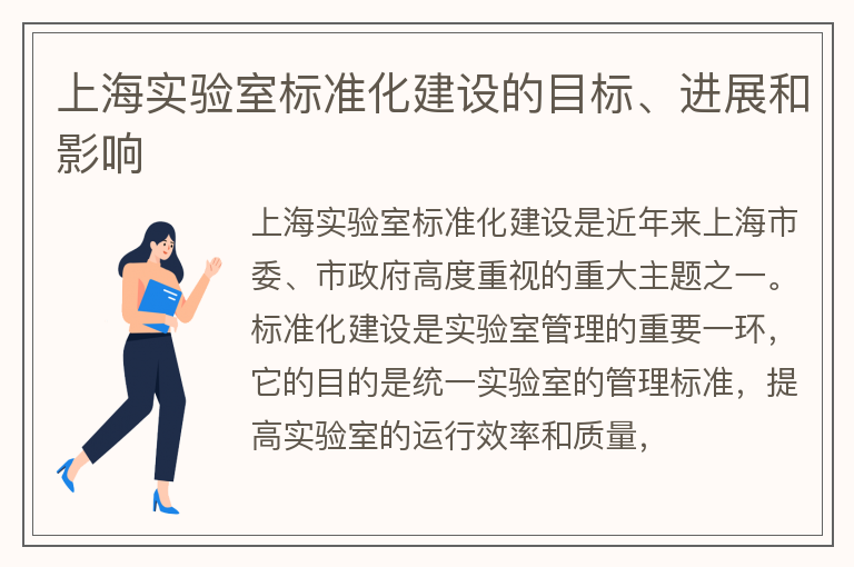 上海实验室标准化建设是近年来上海市委、市政府高度重视的重大主题之一。标准化建设是实验室管理的重要一环,它的目的是统一实验室的管理标准,提高实验室的运行效率和质量,......【点击详情】