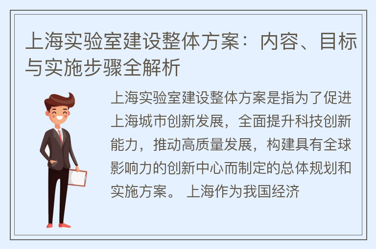 上海实验室建设整体方案:内容、目标与实施步骤全解析