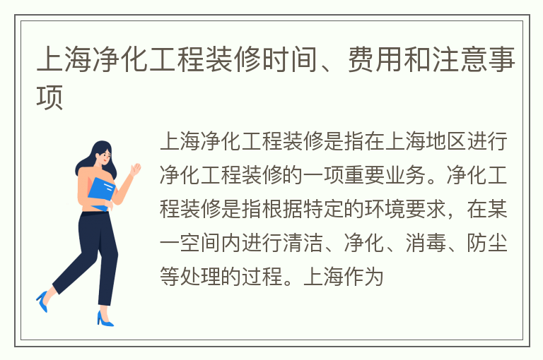 上海净化工程装修是指在上海地区进行净化工程装修的一项重要业务。净化工程装修是指根据特定的环境要求,在某一空间内进行清洁、净化、消毒、防尘等处理的过程。上海作为......【点击详情】