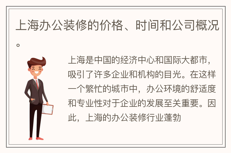 上海是中国的经济中心和国际大都市,吸引了许多企业和机构的目光。在这样一个繁忙的城市中,办公环境的舒适度和专业性对于企业的发展至关重要。因此,上海的办公装修行业蓬勃......【点击详情】