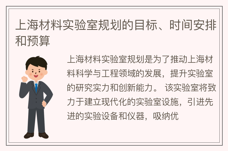 上海材料实验室规划的目标、时间安排和预算