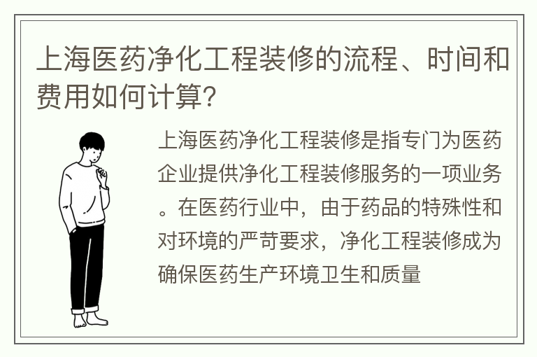 上海医药净化工程装修的流程、时间和费用如何计算?