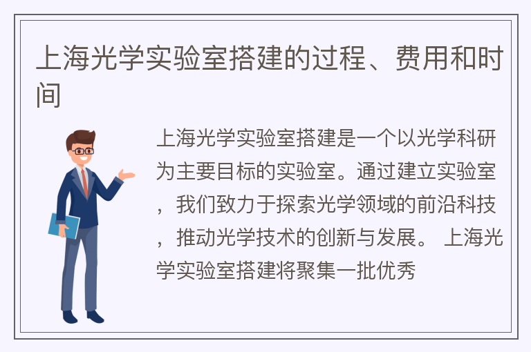 上海光学实验室搭建是一个以光学科研为主要目标的实验室。通过建立实验室,我们致力于探索光学领域的前沿科技,推动光学技术的创新与发展。 上海光学实验室搭建将聚集一批优秀......【点击详情】