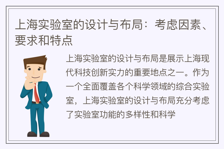 上海实验室的设计与布局是展示上海现代科技创新实力的重要地点之一。作为一个全面覆盖各个科学领域的综合实验室,上海实验室的设计与布局充分考虑了实验室功能的多样性和科学......【点击详情】