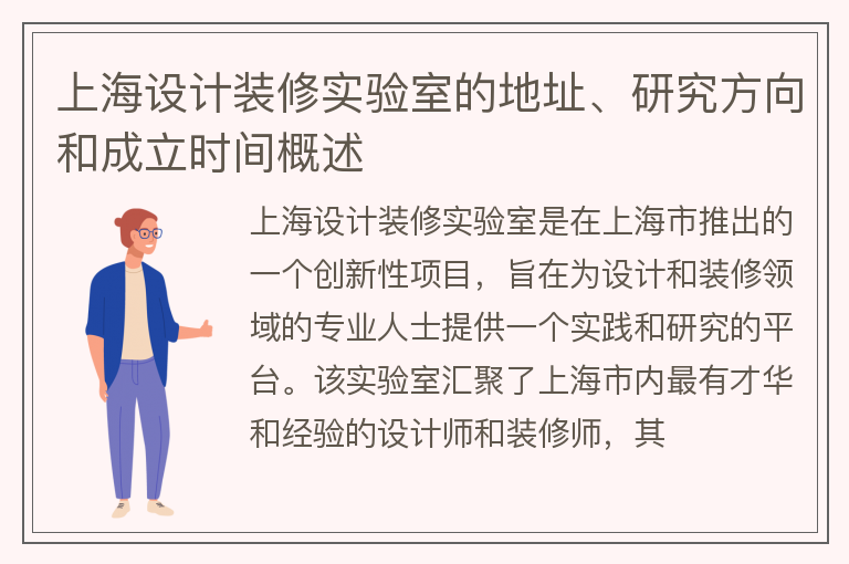 上海设计装修实验室的地址、研究方向和成立时间概述