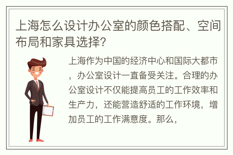 上海怎么设计办公室的颜色搭配、空间布局和家具选择?
