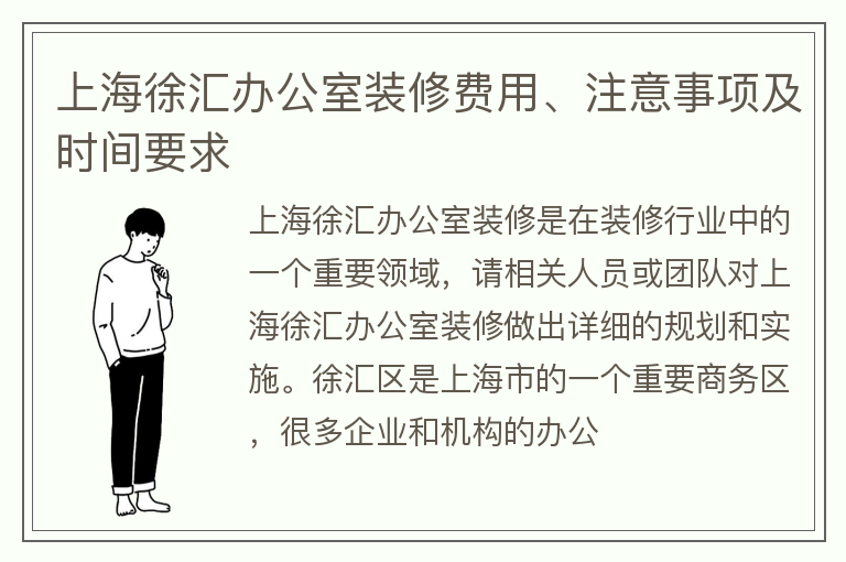 上海徐汇办公室装修费用、注意事项及时间要求